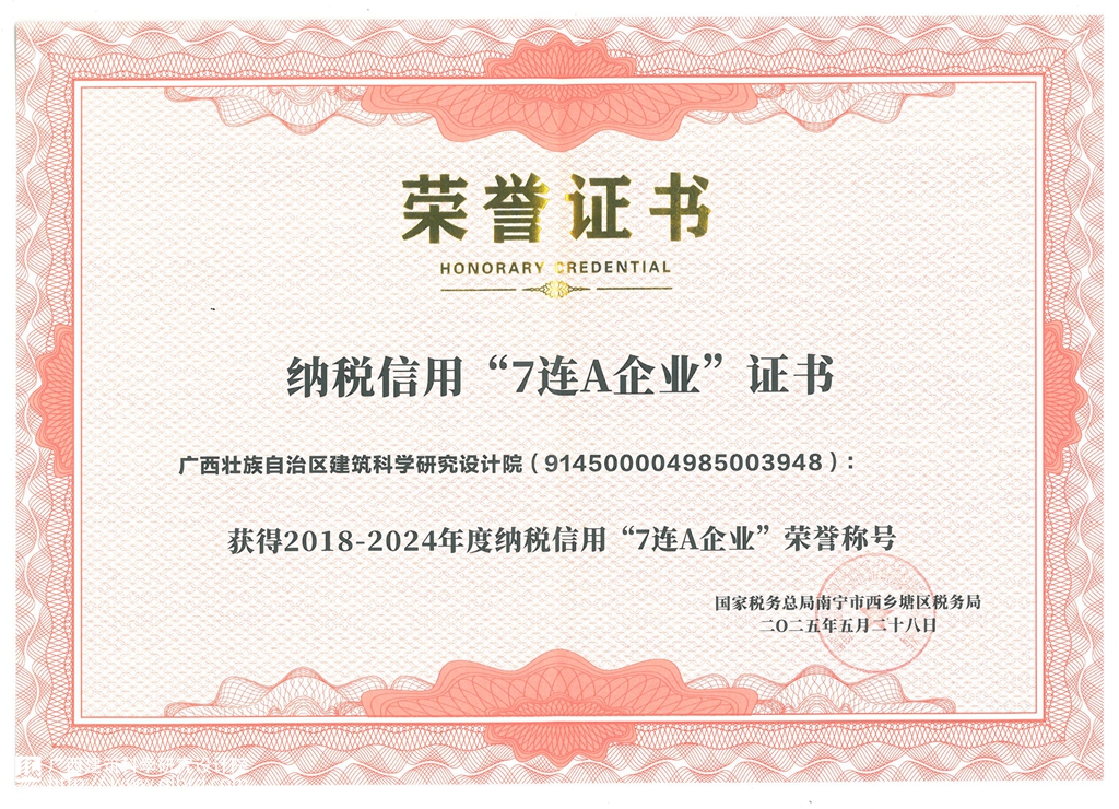 近日,國家稅務(wù)總局南寧市西鄉(xiāng)塘區(qū)稅務(wù)局公布了2024年度企業(yè)納稅信用等級評定結(jié)果。我院憑借長期以來誠信納稅的卓越表現(xiàn)和良好信譽(yù),成功摘得2018至2024年度納稅信用“7連A”企業(yè)榮譽(yù)稱號。